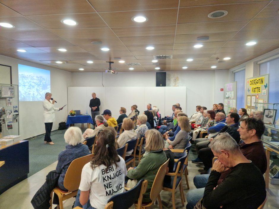V prostorih knjižnice smo 9. aprila pripravili literarni večer, posvečen dolgoletni zgodbi slovenskih vzponov v najvišja gorstva sveta. Uvodoma je direktorica knjižnice mag. Damijana Hrabar toplo pozdravila vse prisotne in s svojimi besedami pripravila prostor za pripoved o vztrajnosti, tovarištvu in ljubezni do gora.